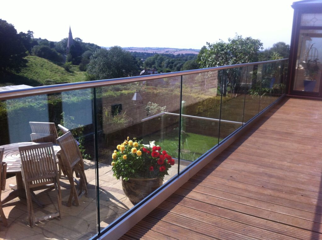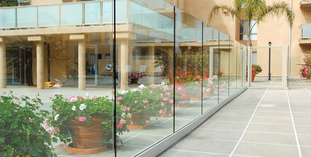 (often called “U-Channel” or “Shoe” railing) is a premium frameless glass railing system. Instead of using visible posts or clips, the glass is held at the base by a continuous aluminum track, creating a “floating” glass effect.