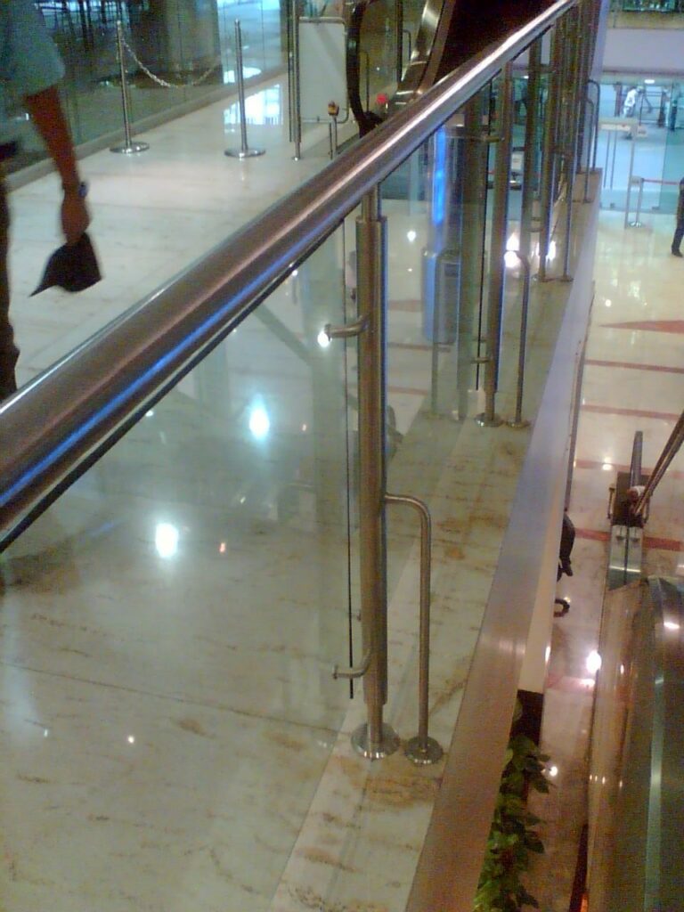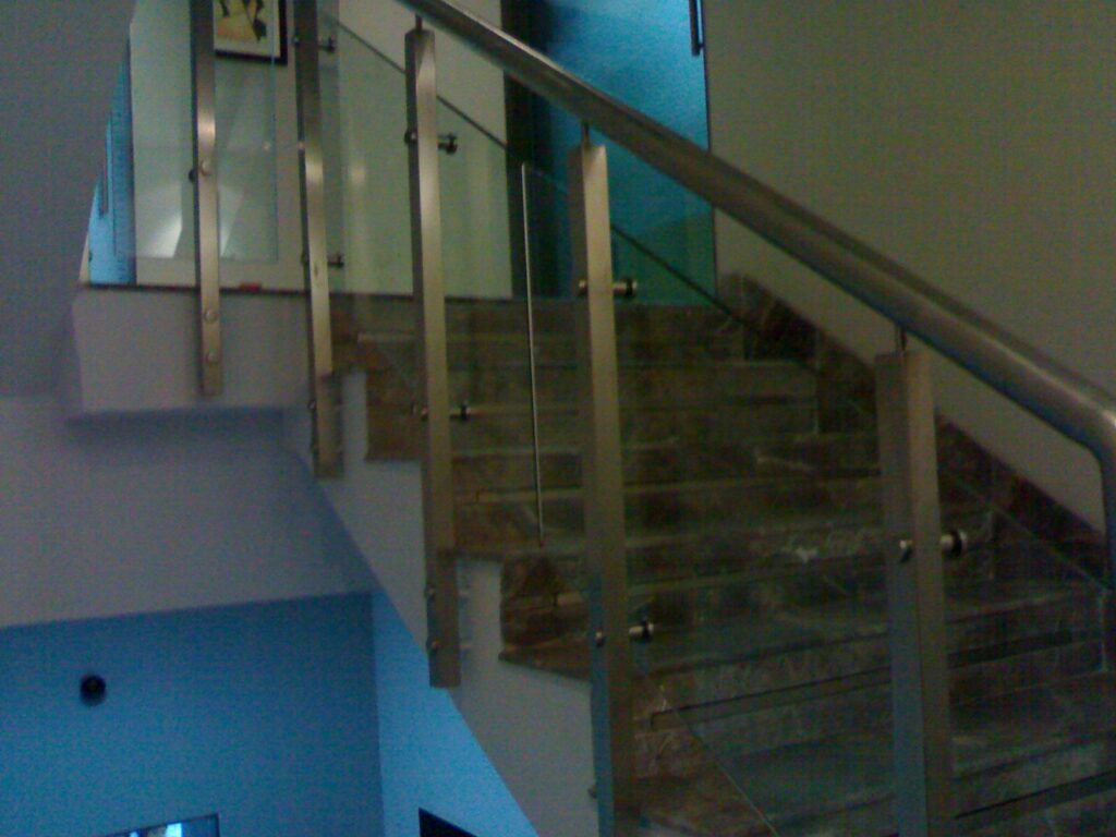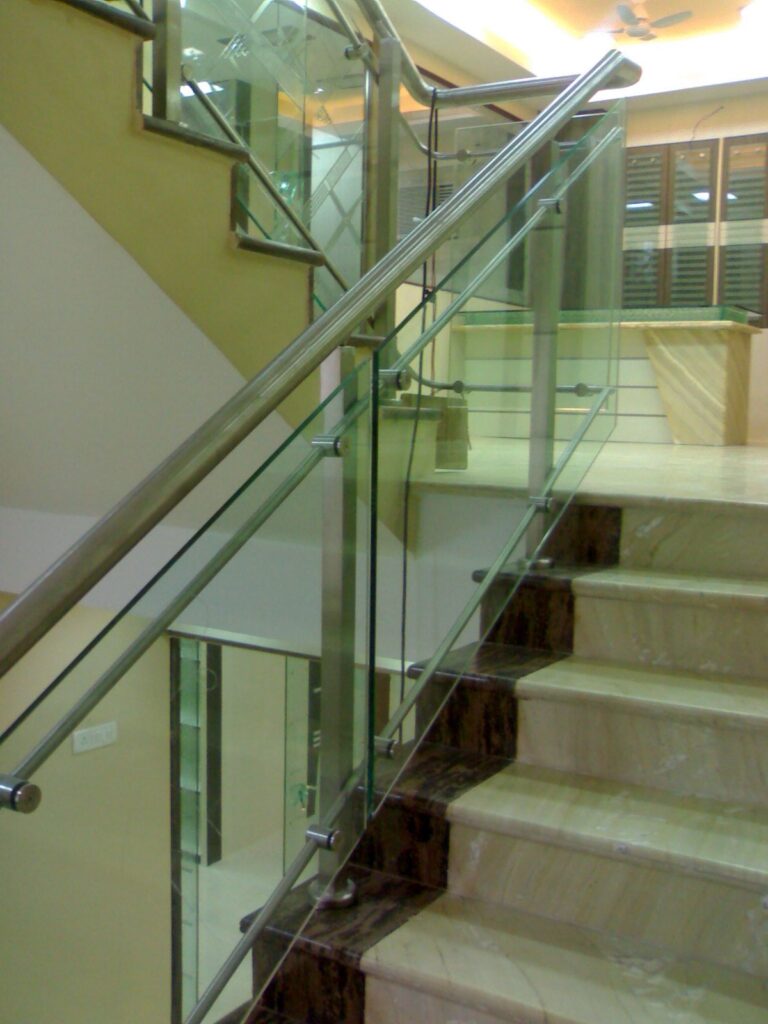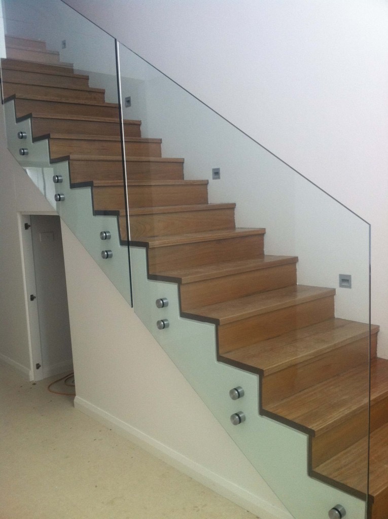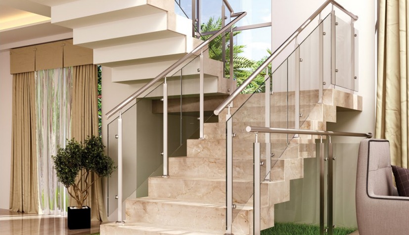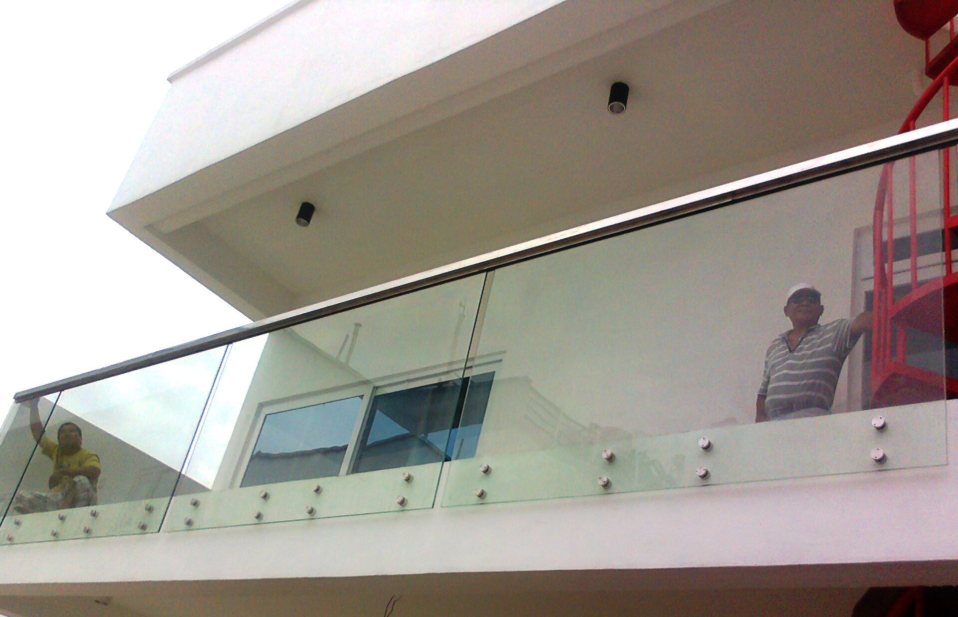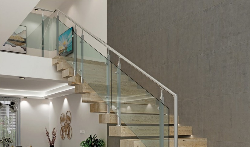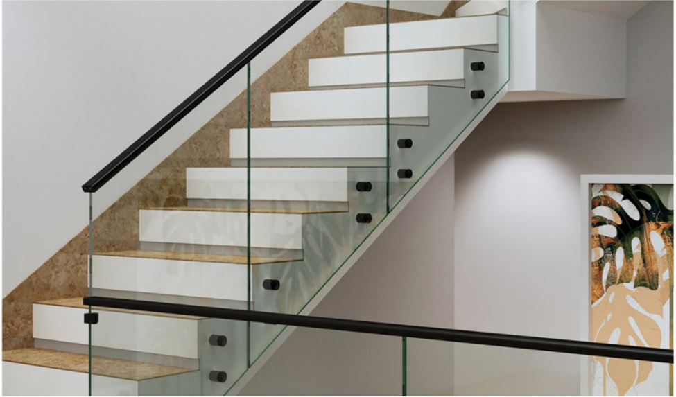(often called Standoff or Pin-Fixed railing) is a premium frameless glazing solution where the glass panels are secured to the side of a staircase, balcony, or floor slab using circular stainless steel bolts.