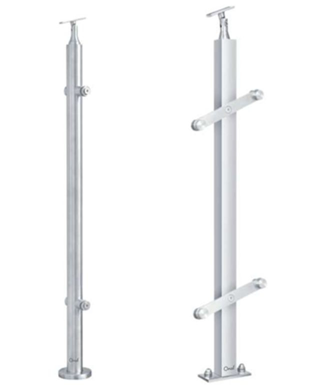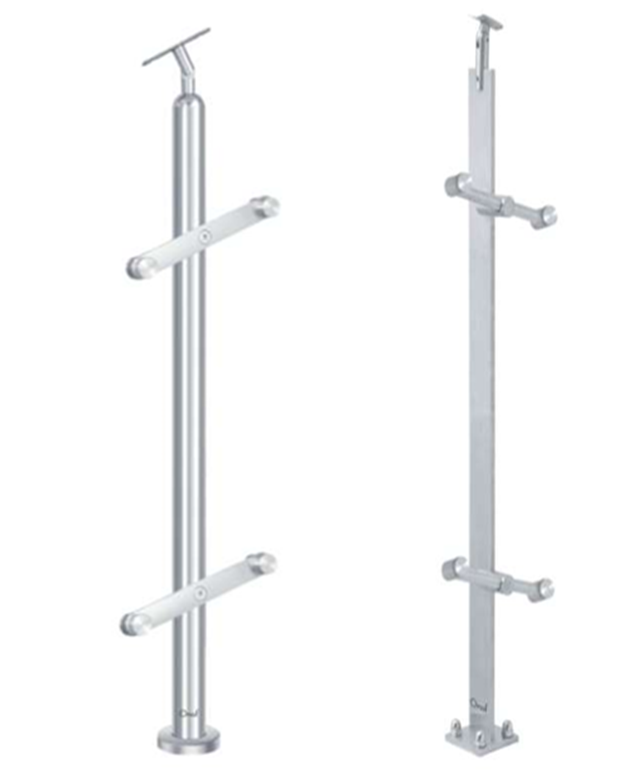 This system uses stainless steel posts (mullions) as the primary structure, with glass panels acting as the infill.