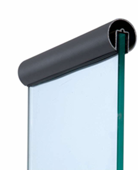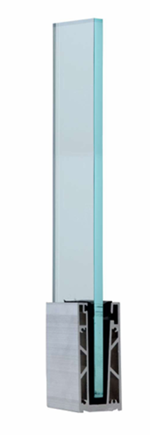 The spigot system is a “semi-frameless” solution. The glass is held at the bottom by heavy-duty stainless steel “feet” (spigots), leaving the top and sides of the glass completely open.