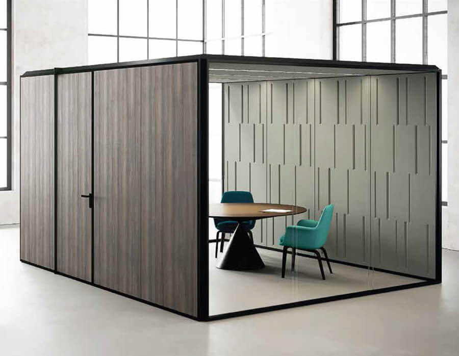 InBox is a defined system, suitable for preserving acoustic privacy. It provides a wide range of material and dimension combinations, acknowledging it as the best choice to create meeting rooms, Office, internet or Calpoints or… just quiet relax areas. The self-standing frame enables a quick and undemanding placement of the InBox modules, while the many materials, colors and finishings merge it into any location.