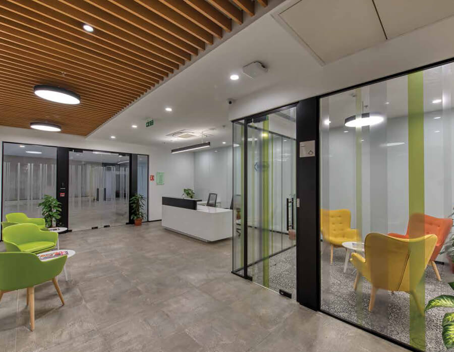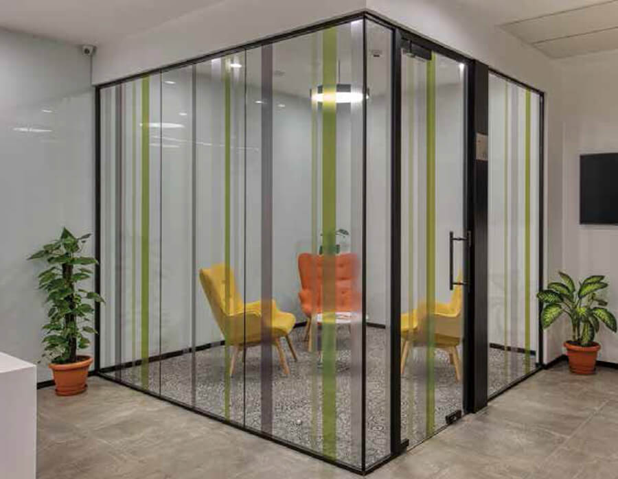 The same is available in slim line –Wide Line as well as Double glass system of Ótic Partición.The results are the same in acoustic performance as standard glass partition system.
